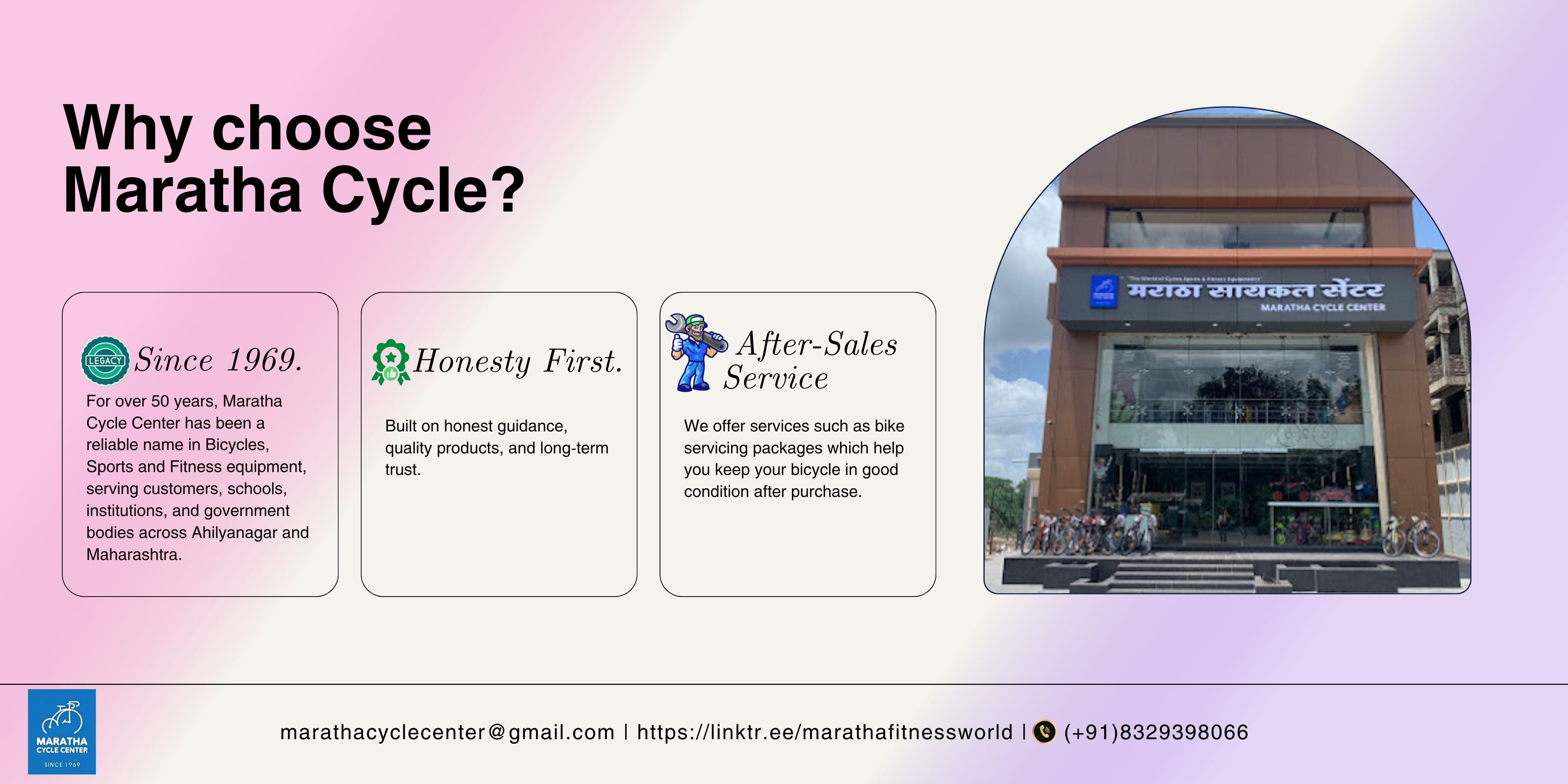 I bought three bikes from Maratha Cycle and I am really happy with them. The bikes are strong, safe, and work smoothly. The prices are good for the quality, so I feel like I got great value. The staff were helpful and made it easy to choose the right bikes. My kids love their new bikes, and I am sure they will last a long time. I definitely recommend Maratha Cycle for anyone looking for good, affordable bikes.